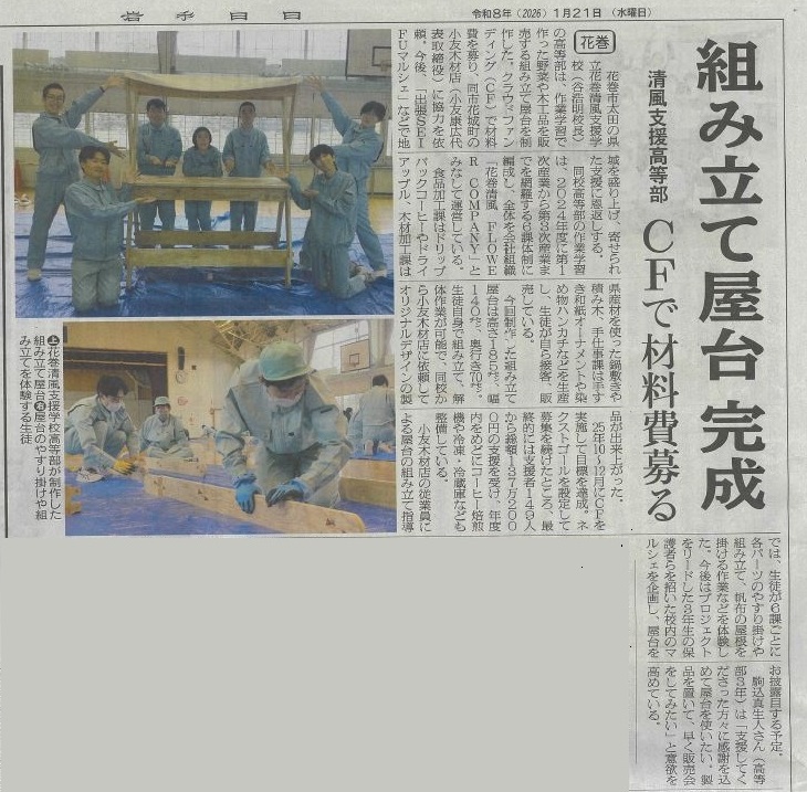 ようこそ、岩手県立花巻清風支援学校のホームページへ。