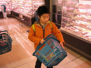 | 大きなカゴを持ってお買い物。 次は何を買おうかな? |