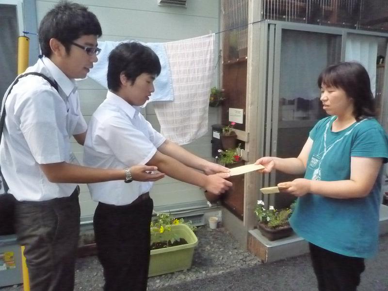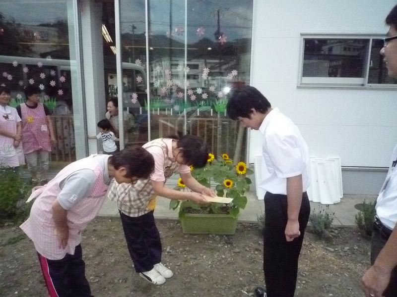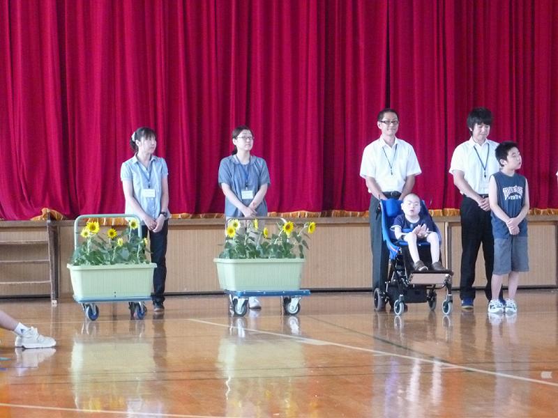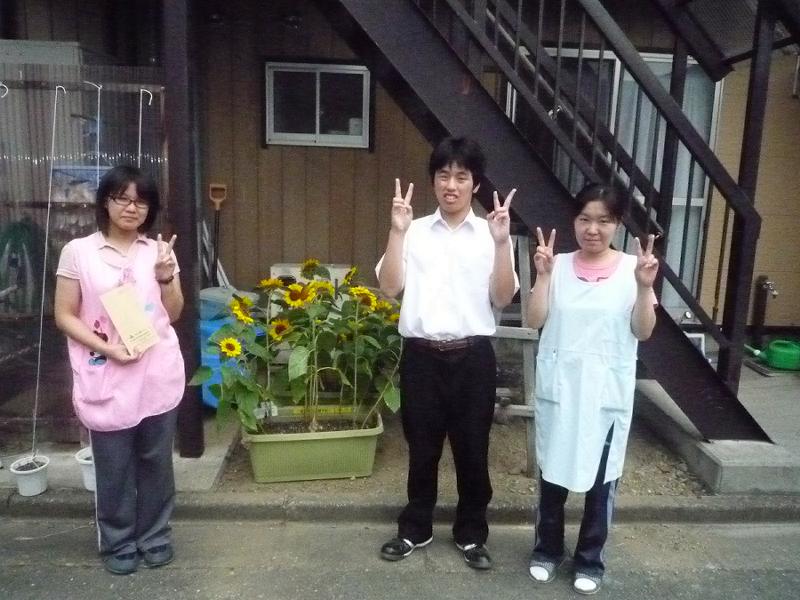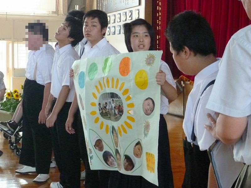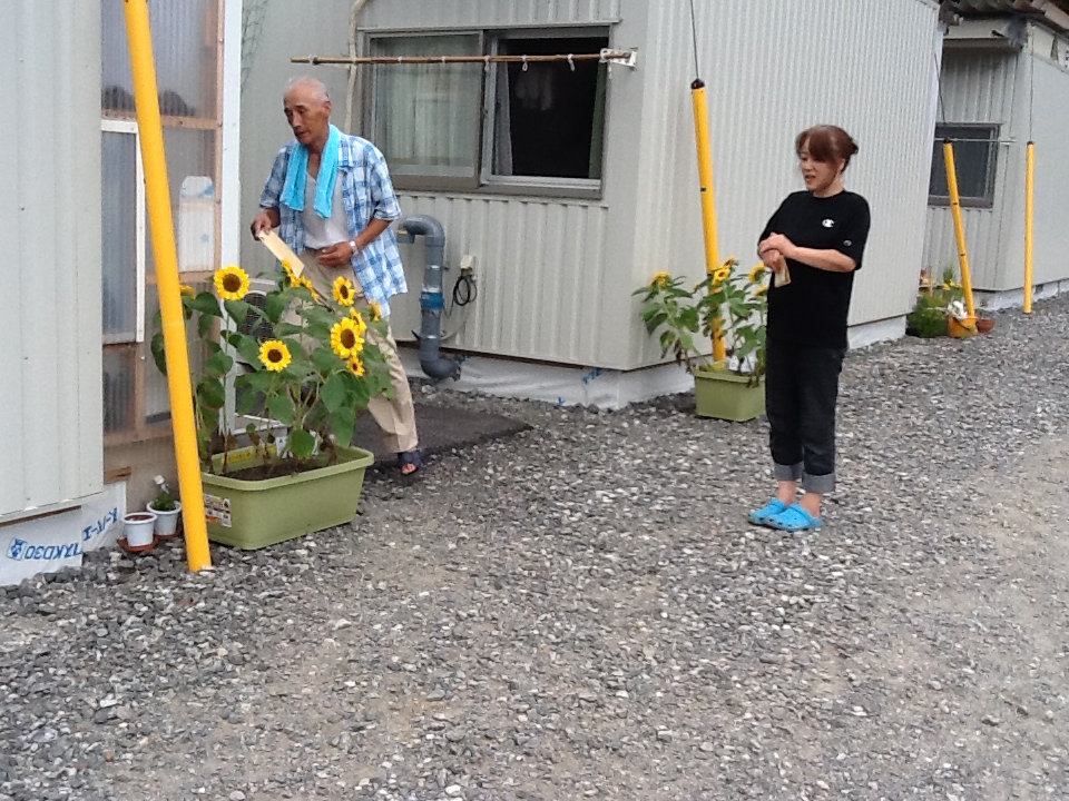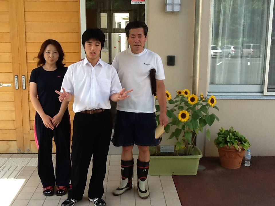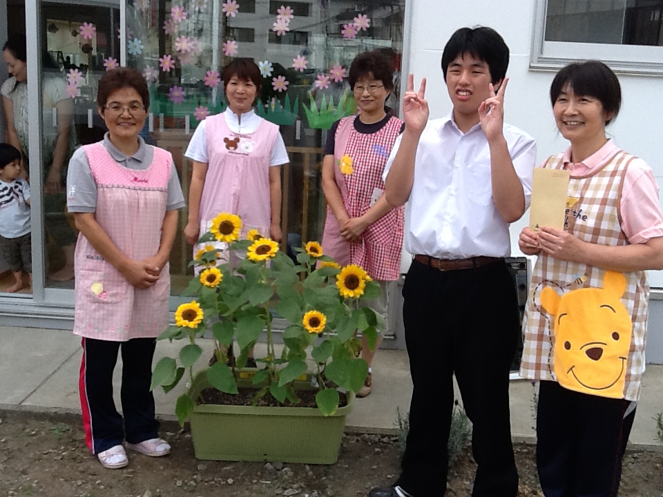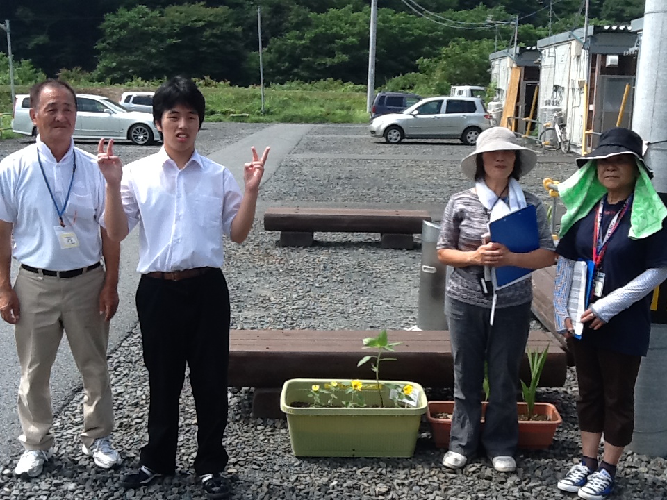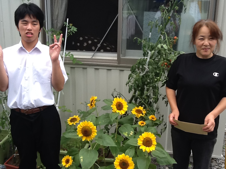 釜石市と大槌町の福祉施設、病院、仮設住宅にもひまわりのプランターを届けてきました。今回は、生徒の代表として中学部の生徒会長1名が出かけてきました。中学部の生徒たちが書いた手紙とともにお渡しすると、とても喜んでいただけました!