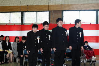 小学部3名、中学部3名、高等部8名、しゃくなげ分教室2名の新入生が本校に入学しました。おめでとうございます。