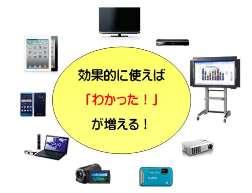 本校では、平成23年度から「まほうのふでばこプロジェクト」に参加し、タブレットPCを用いて障がいのある生徒たちを支援・指導する方法の検証を行っています。また、その他の機器(ノート/デスクトップPC、プロジェクター、デジタルカメラ、オーディオ等)も授業で活用し、生徒が「わかって取り組める」授業を展開することを目指しています。