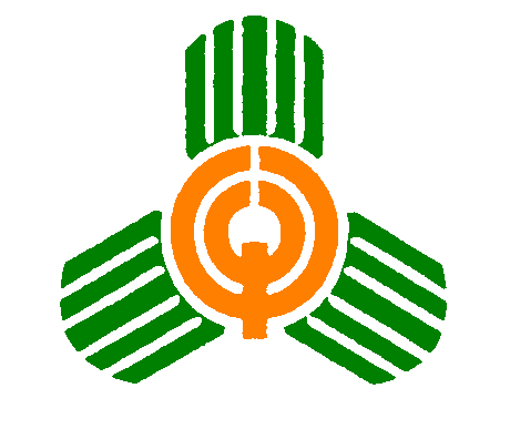 周りは五葉の山と五葉松をあしらい、学校、病院、家庭を基盤として、自立、創造、友愛をモットーに、中央は子ども達が天に向かって双手を挙げ、障がいを克服して明るく、強く、たくましく生きることを表現したものです。