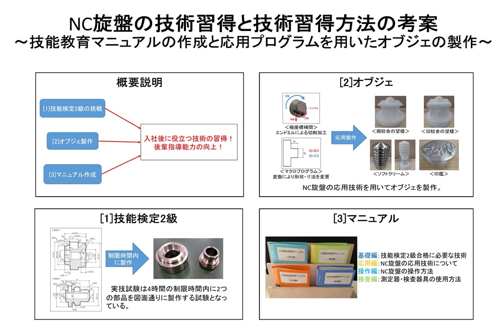 【技能五輪全国大会(旋盤職種)出場に向けた挑戦】~旋盤加工に関する研究及び練習と技能検定指導マニュアルの作成~ |