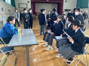 などについて説明を受けました。生徒たちは熱心に事業所の方々の話を聞き、仕事をする上で必要な力や