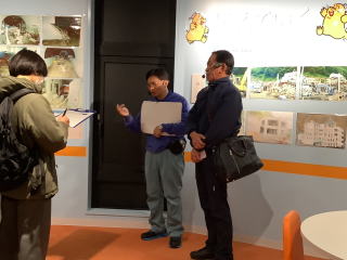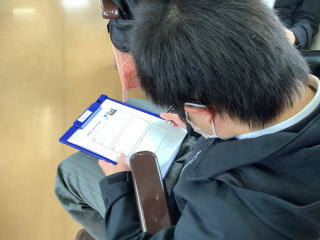 から、震災当時の状況、防波堤の役割、復興までの取組み等の説明を聞きました。熱心にメモをとって説明を聞い