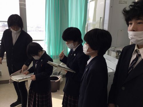 | 中学部2年生の高等部作業見学が行われました。同じ学校で学習に取り組んでいる先輩方が作業している姿を見て、高等部の先輩のようにいろいろな作業をしてみたいという気持ちを膨らませています。生徒にとって高等部での学習をイメージできる良い機会となりました。 | |