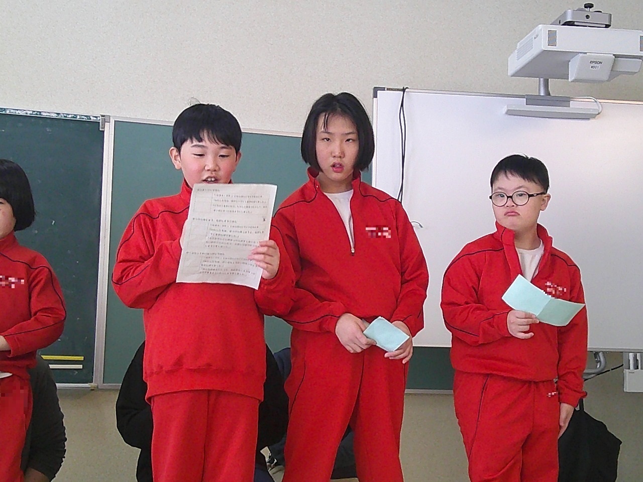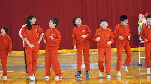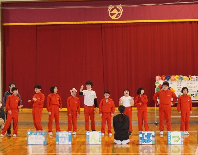| 一緒に中学部生活を過ごした3年生への餞に、1・2年生から感謝や思い出のメッセージと明るいダンス、エールを贈りました。高等部でもがんばってください! | |